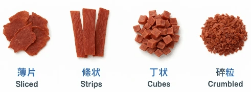 薄片 、條狀、丁狀、碎粒
